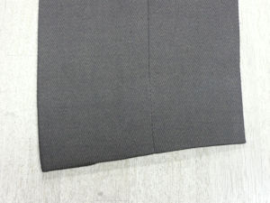裾は、モーニングカット採用。縫いしろ内部にもこだわっております 裾のデザインは、シングルの場合、「モーニングカット」採用しています。横から見ると斜めにデザインされシルエットがきれいに保持されます。縫いしろの中には、芯を内蔵。重みをだして、バタバタと浮き上がるのを防いでくれます。デザインと機能性に富んでおります。 |