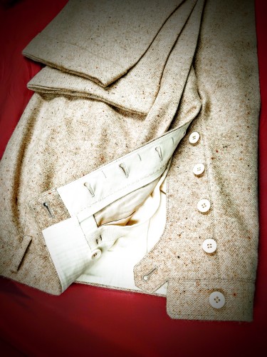 前立て箇所は、地の目をきれいに整えてハンドステッチを採用しております。まさにフルオーダーならではの気品が漂うお仕立てです。 |